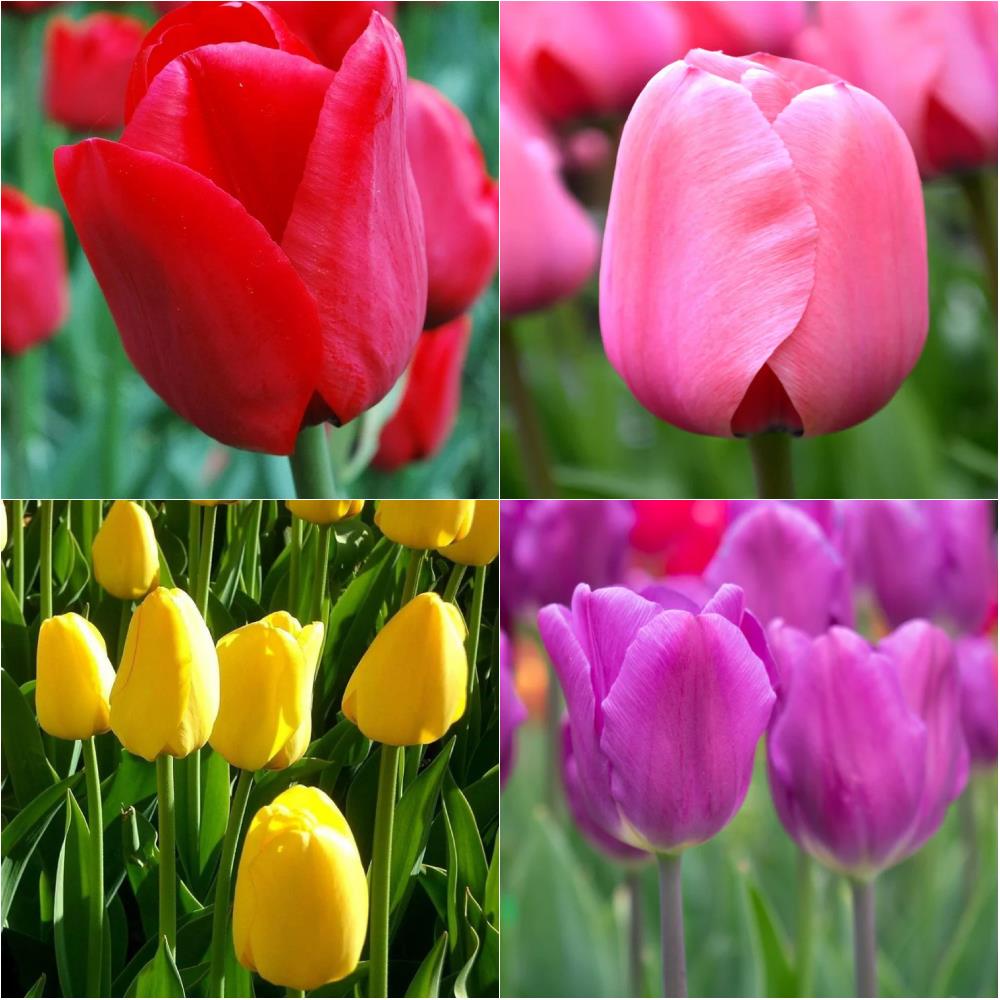 This listing is for 100 x Tulip ' mix colours ' bulbs, mix of Red, Yellow, Pink and Purple 25 of each colour